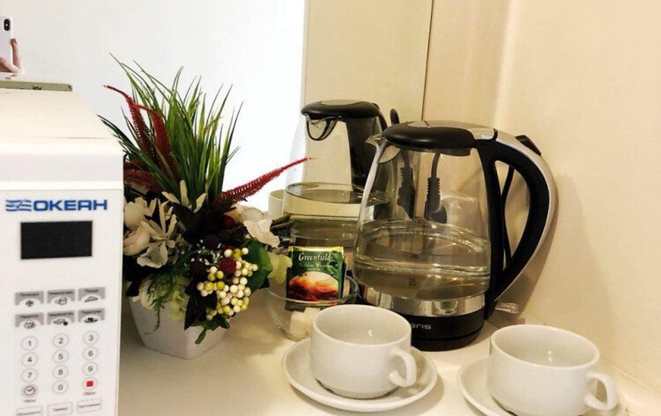 В номере: кровати односпальные /одна двуспальная кровать, прикроватные тумбочки, стол, стул, шкаф, кондиционер, микроволновая печь, телевизор, телефон, холодильник, чайный набор посуды, электрочайник