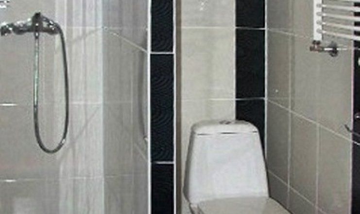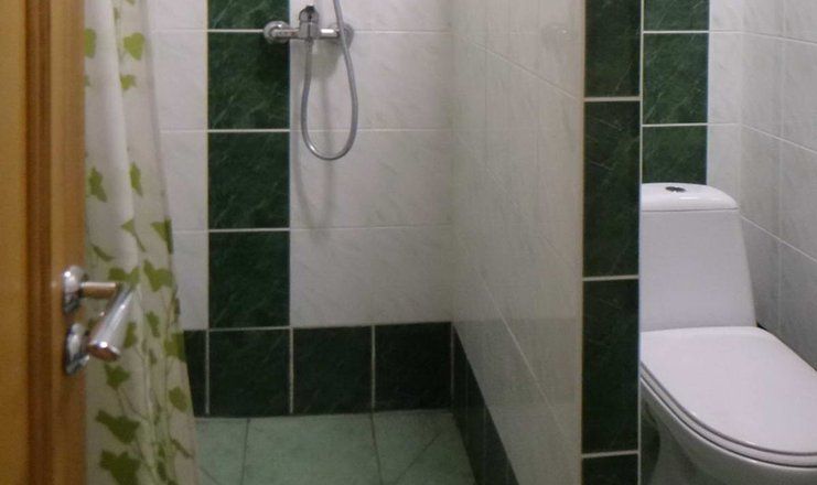 Санузел: душ (на блок), раковина, унитаз, туалетные принадлежности, фен