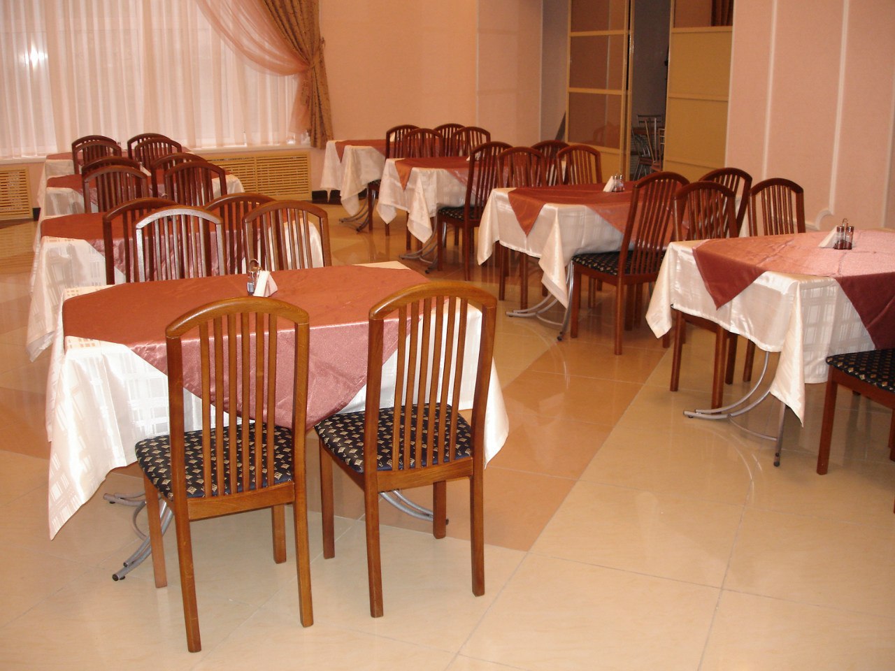 В санатории «Лилия» светлая и чистая столовая, которая одновременно может обслуживать 75 отдыхающих. Также есть банкетный зал на 100 мест для проведения праздников, банкетов, переговоров и т.д.