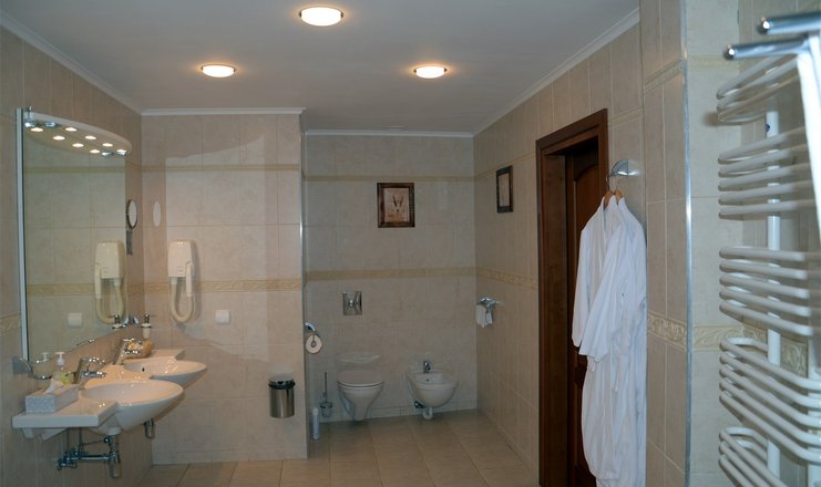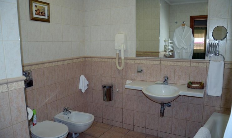 Санузел: биде, с ванной, тапочки, теплый пол, туалетные принадлежности, фен, халат