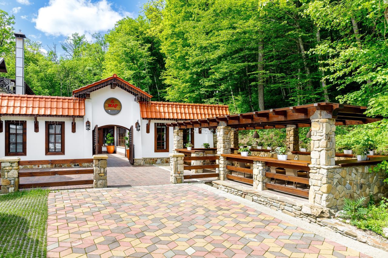 Территория отдыха в парк-отеле «Орлиное гнездо» Горячий ключ