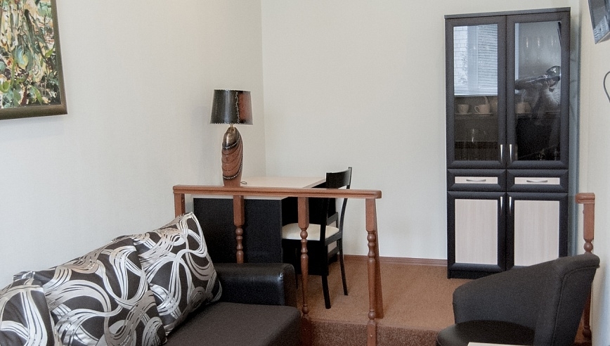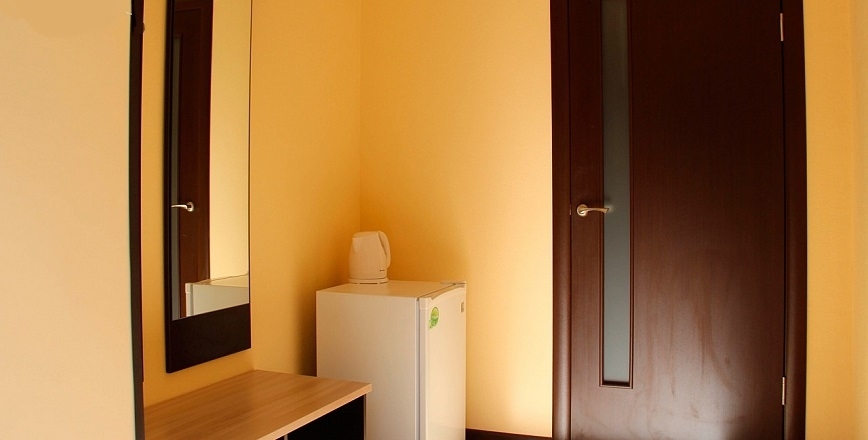 В номере: Номер отлично подходит для размещения двух взрослых и одного или двух детей на дополнительных местах. Детям до 3 лет кроватка предоставляется бесплатно. Дополнительные место - диван раскладной. В номере есть телевизор, холодильник, шкаф, столик журнальный, сервант, диван раскладной.