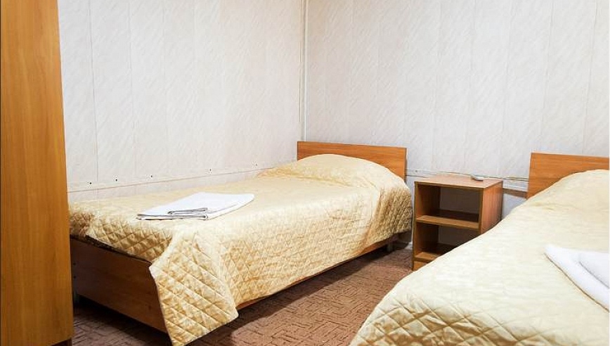 В номере: Трёхместный однокомнатный номер со спальней (три односпальные кровати), шкаф, тумба прикроватная, набор для ванной.