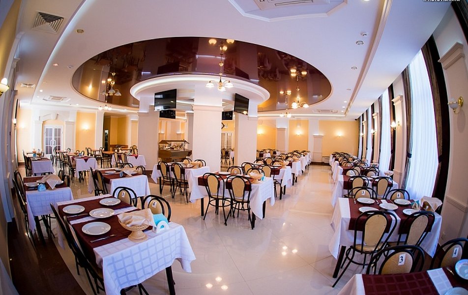 Современные просторные обеденные залы с уютной атмосферой.