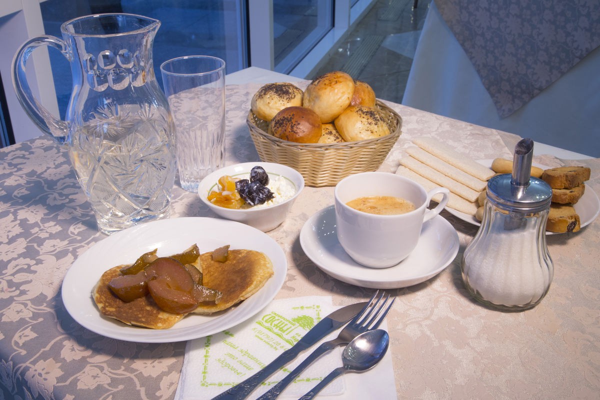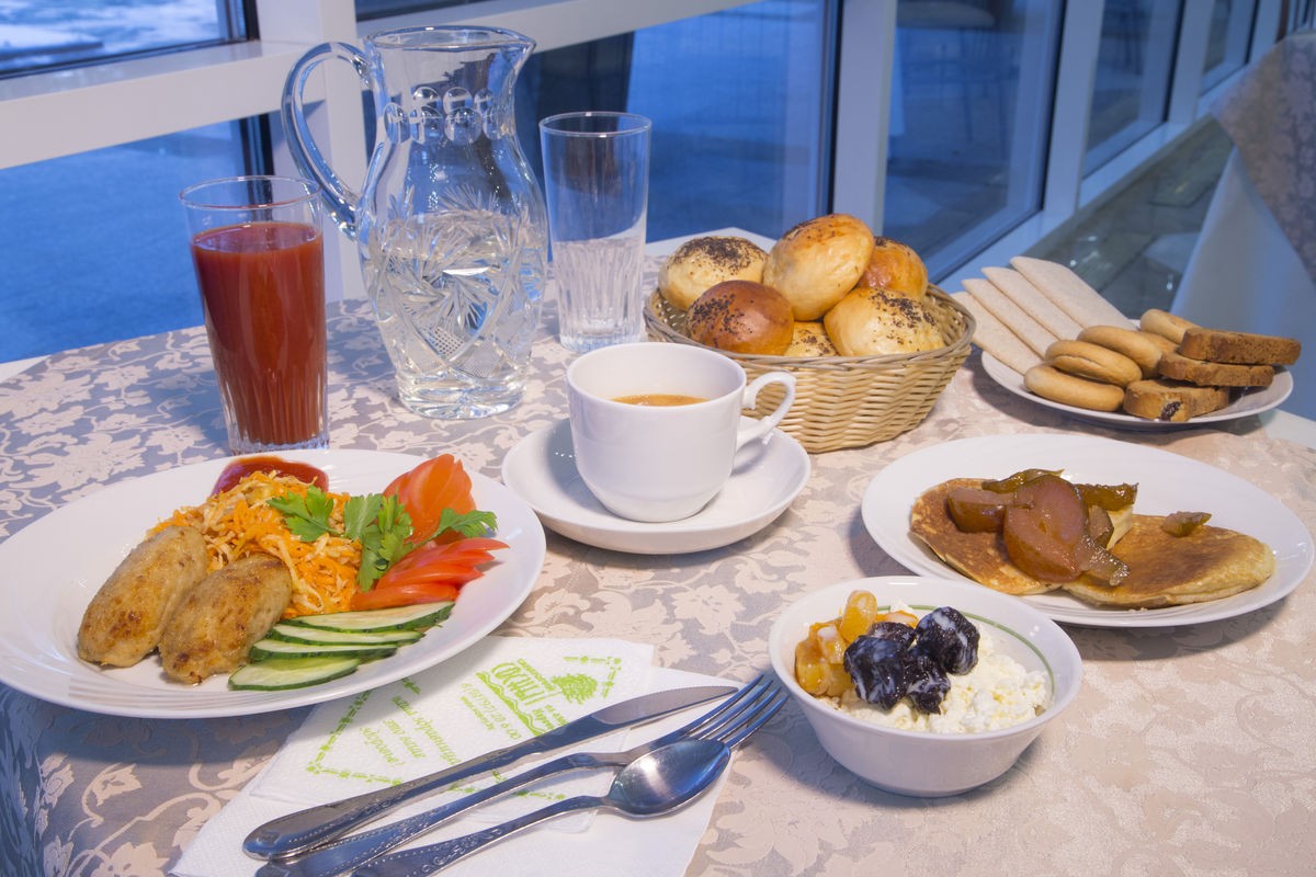 Наше питание по типу "шведский стол" позволяет нашим гостям выбирать блюда по своему вкусу и не оставляет их голодными. Мы уверены, что наше разнообразное и качественное питание будет приятным дополнением к лечению и оздоровлению в нашем санатории.