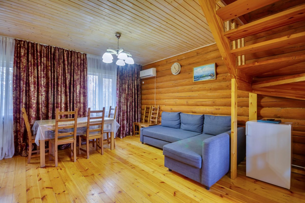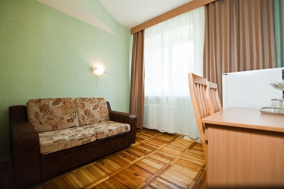 В номере: 2-спальная кровать, мягкий раскладной диван, ТВ, журнальный стол, холодильник, стенка для посуды, шкаф, кондиционер.